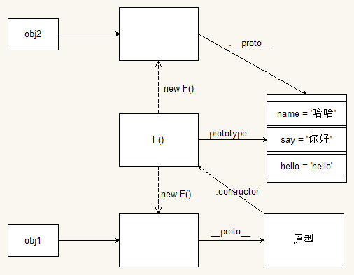 var obj = new F();new一个F,即创建了一个F对象,并把创建的F对象赋值给了obj