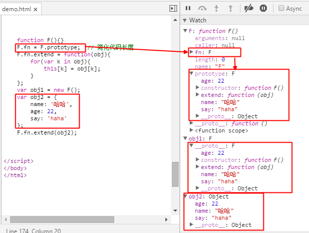 优点: 资源共享 说白了就是可以让所有的对象实例共用原型对象里面的所有属性和方法